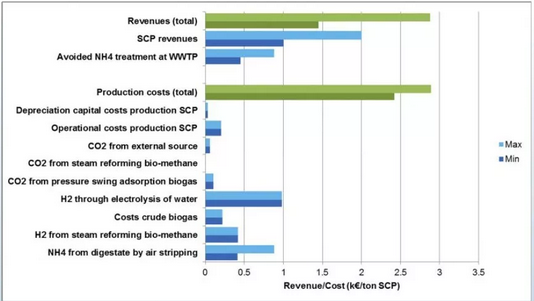 分析結(jié)果顯示污水中蘊(yùn)含的單細(xì)胞蛋白SCP產(chǎn)量潛力是相當(dāng)可觀的:阿姆斯特丹西區(qū)污水廠一年的污泥消化液能產(chǎn)生6300噸SCP,能滿足城市人口36%的凈蛋白需求。在經(jīng)濟(jì)層面而言,SCP也有可觀的價(jià)值。關(guān)鍵是找出從污水中高效提取氨的方法。另外研究團(tuán)隊(duì)還對(duì)蛋白的營養(yǎng)價(jià)值、可消化性、變應(yīng)原性以及公眾接受度進(jìn)行了初步評(píng)估。