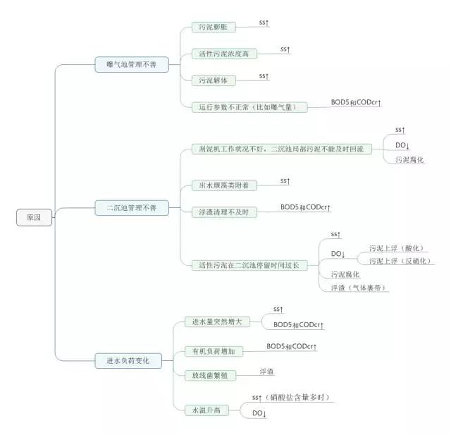 解決辦法:增加負(fù)荷均衡營養(yǎng),提高水溫,改善污泥生長環(huán)境。
