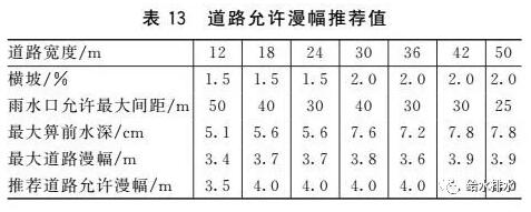 道路漫幅的規(guī)定可借鑒美國科羅拉多《Urban Storm Drainage Criteria Manual》的規(guī)定,見表1。