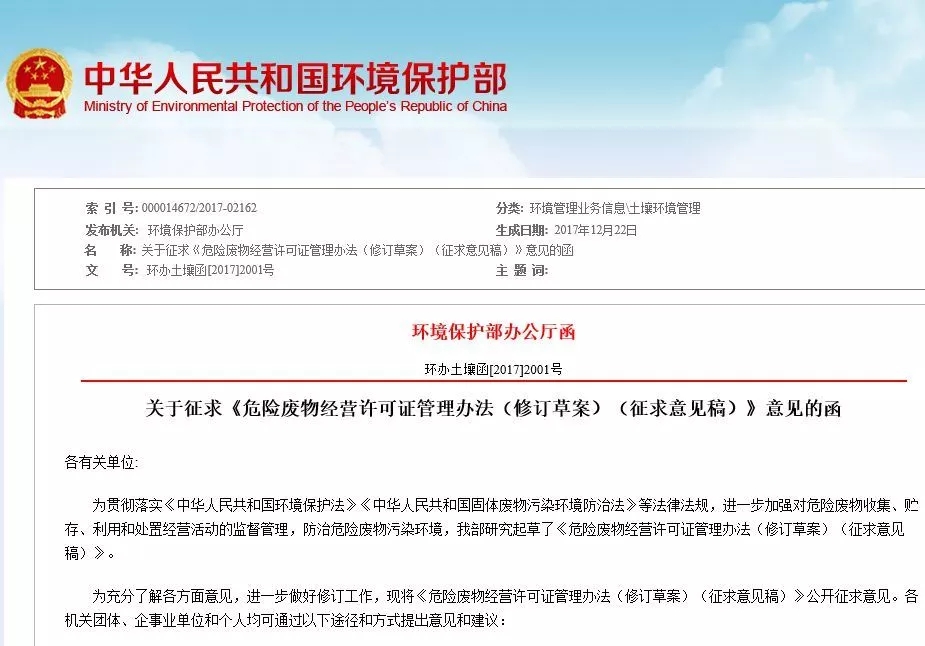 環(huán)境保護(hù)部公布的“關(guān)于征求《危險廢物經(jīng)營許可證管理辦法(修訂草案)(征求意見稿)》意見的函(環(huán)辦土壤函[2017]2001號),其中,第三十九條 以下危險廢物利用或者處置活動免于領(lǐng)取危險廢物經(jīng)營許可證: