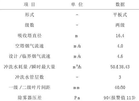 某發(fā)電公司660MW超臨界燃煤空冷機組,鍋爐型號:DG2100/25.4-II2,配套建設(shè)有石灰石-石膏濕法脫硫裝置。每座吸收塔頂部安裝兩級水平布置的除霧器,參數(shù)見表1。