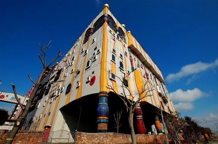“舞洲工場”的外觀設(shè)計出自奧地利著名生態(tài)建筑設(shè)計師Friedensreich Hundertwasse。鮮艷的色塊使得這座垃圾廠色彩斑斕,不再給人以冷冰冰的感覺,建筑物外表面紅色與黃色的條紋象征著處理廠的火焰。工廠有著五百多個形狀各異的窗戶,其中八成是用作裝飾。整個建筑被綠植包圍,曲線的建筑設(shè)計與植被相映成趣,體現(xiàn)了舞洲垃圾處理廠“融技術(shù)、生態(tài)、藝術(shù)為一體”的口號。