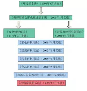 第一層次為基礎層次,明確建立循環(huán)社會的政策措施:減少垃圾產(chǎn)生量,以法規(guī)形式規(guī)定了垃圾產(chǎn)生者責任等;第二層次為綜合性法律;第三層次是根據(jù)產(chǎn)品的性質(zhì)具體規(guī)定的法律法規(guī),包括《家電再利用法》、《建筑再利用法》等等,由此,日本垃圾管理的法制體系趨于完善,對垃圾的生產(chǎn)、分類回收、處理及再利用的整體管理體系的建立和運行起到了制度保障。