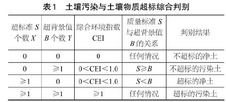 (3)土壤污染與土壤物質(zhì)超標(biāo)綜合判別。判別指標(biāo)可選用土壤綜合環(huán)境指數(shù)CEI,其計算方法同規(guī)范HJ/T166中的“綜合污染指數(shù)CPI”計算方法,但依據(jù)CEI判別土壤污染與質(zhì)量超標(biāo)時,應(yīng)將規(guī)范中的表12-2修改為表1的形式。