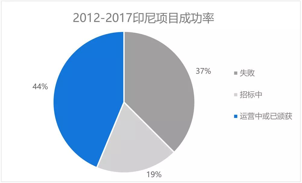根據(jù)宇墨不完全統(tǒng)計,不包括還在策劃中項目,印尼從2012年至2017年的環(huán)保PPP項目成功率是44%。雖然成功,也必須了解許多項目在頒獲前也可能有長達至少4年的延誤,例如Umbulan水供給項目從策劃到頒獲就用了4年(2012-2016年),項目目前也還在建設(shè)當中,預(yù)計2019年開始運營。那你可能也在猜測失敗的項目怎么了?失敗項目在印尼有很多時候都會轉(zhuǎn)移給印尼國企負責,2013年Maros水供給項目就是如此。據(jù)了解,項目交移給國企原因是當?shù)卣椭醒胝念A(yù)期不能夠符合,導(dǎo)致當?shù)卣畬幵赴秧椖哭D(zhuǎn)移給當?shù)貒筘撠?。也有很多時候失敗的項目在宣布后不知不覺中毫無音訊,之后就沒人提起,也只有參與策劃的人員會知道實情。根據(jù)業(yè)內(nèi)人士透露,雖然沒有官方數(shù)據(jù),印尼基建項目的總成功率可能只有10%左右。如果有選擇,印尼政府必定希望PPP項目可以由私人企業(yè)投資,畢竟印尼國企也已經(jīng)負債累累,7家基礎(chǔ)建設(shè)相關(guān)國企的總債務(wù)就有美金900億,一年有60%增長。