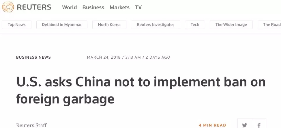 最近,美國總統(tǒng)特朗普又在“搞事情“。在WTO貨物貿(mào)易委員會的會議上提出,要求中國取消對“洋垃圾”的進口禁令。稱中國對于可回收品的進口限制已經(jīng)極大地中斷了全球廢金屬供應(yīng)鏈的運轉(zhuǎn)。