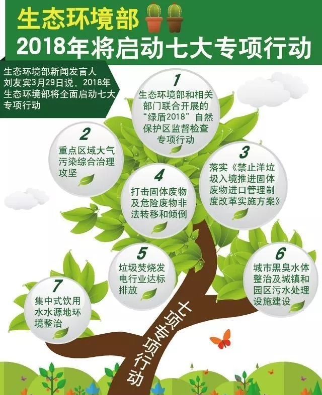 3月29日,生態(tài)環(huán)境部舉行了成立后的首場例行新聞發(fā)布會。新聞發(fā)言人劉友賓表示,中央環(huán)保督查工作將繼續(xù)推進深化,再用三年左右時間完成第二輪中央環(huán)保督查全覆蓋。全面啟動七大專項行動,作為打好“污染防治攻堅戰(zhàn)”的標(biāo)志性工程。