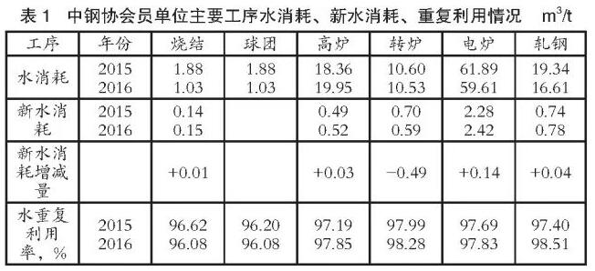 近年,中鋼協(xié)會(huì)員單位主要工序水消耗、新水消耗情況見(jiàn)表1。