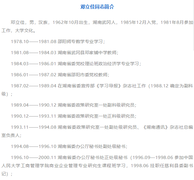 鄧立佳 任湖南省環(huán)境保護廳廳長