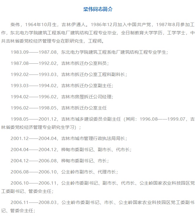 2月9日,吉林省第十三屆人民代表大會常務(wù)委員會第一次會議通過,任命柴偉為吉林省環(huán)境保護廳廳長。