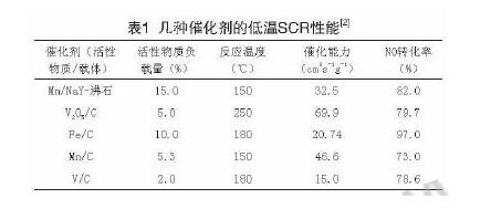 (2)SCR催化劑原材料表面改性技術(shù)和配方。即調(diào)整催化劑表面酸堿性,以獲得更多的酸性活性基團,增強對還原劑NH的吸附,或在高效的載體上配合不同的活性物質(zhì),如V、W、Mn、Cu、Ni~lPt等金屬氧化物,使催化劑具有高的抗SO,和水蒸氣活性。表1列舉了使用不同載體以及表面陽離子修飾技術(shù)制備的不同催化劑在較低溫度下(150cC~250cC)的脫硝活性。
