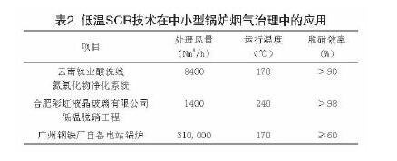 低溫SCR催化脫硝技術(shù)的應(yīng)用是一項非常復(fù)雜的工程,面臨著眾多應(yīng)用領(lǐng)域。表2列舉了我國低溫SCR技術(shù)在酸洗行業(yè)、玻璃窯爐和鋼鐵鍋爐煙氣治理中的應(yīng)用。