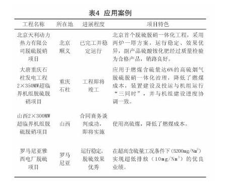 該工藝具有脫硫(達99%以上)、脫硝(可達80%以上)、脫重金屬(達90%)、二次除塵(達60%以上)等多種煙氣減排效果。具有良好的經(jīng)濟效益和推廣應(yīng)用價值。濕法有機催化氧化煙氣脫硫脫硝一體化工程應(yīng)用案例見表4。