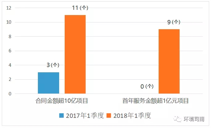 ▲ 2018年1季度,合同金額超10億項(xiàng)目11個,首年服務(wù)金額超1億元9個。