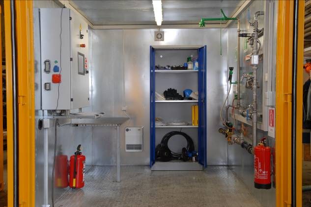 圖10: 原位化學(xué)及原位生物修復(fù)站。由兩個(gè)十尺小集裝箱組成,可機(jī)動(dòng)靈活布置。自動(dòng)控制??勺詣?dòng)投加不同藥劑。