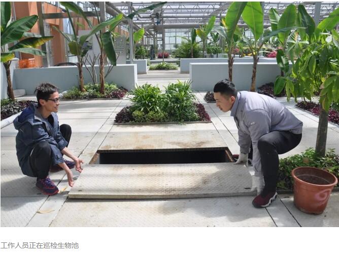 工作人員正在對生物池進行巡檢