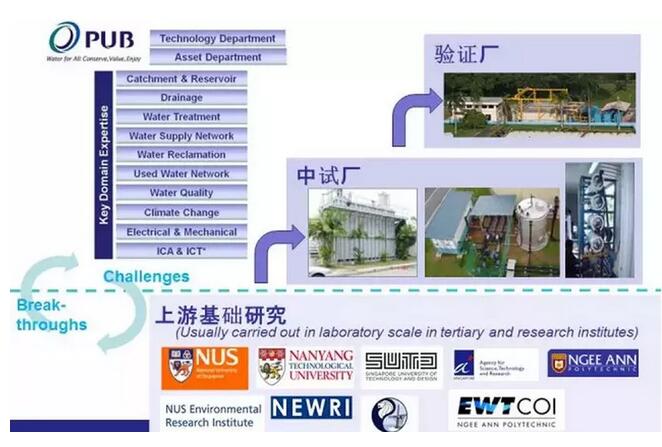 而如何將重大工程和科研投入,實實在在地轉(zhuǎn)為產(chǎn)業(yè)推動力,新加坡的實證研發(fā)和示范研發(fā)機制功不可沒。水處理技術(shù)從實驗室到中試再到生產(chǎn)規(guī)模使用,須經(jīng)歷一個長期過程,而新技術(shù)的應(yīng)用,獲得業(yè)主的信任和試用的成本也很高,這也是水處理技術(shù)推廣難和推廣慢的問題所在。