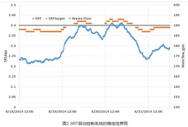 采用硝化處理工藝的加州Chico污水處理廠,由于碎絮(pin floc)問(wèn)題,出水濁度較高,硝化工藝時(shí)常出現(xiàn)異常,造成氯的使用劑量上升,某些情況下糞大腸菌的數(shù)量甚至高于美國(guó)國(guó)家污染物排放削減制度(NPDES)規(guī)定的限值。在安裝SRT控制系統(tǒng)并對(duì)SRT設(shè)定值進(jìn)行季節(jié)性優(yōu)化之后,這些問(wèn)題發(fā)生的頻率顯著下降,氯的用量也明顯減少。同樣地,Sacramento區(qū)域污水處理廠在采用SRT控制系統(tǒng)后,出水水質(zhì)和氯用量都到了明顯優(yōu)化,每年的運(yùn)行費(fèi)用節(jié)省超過(guò)10萬(wàn)美元。