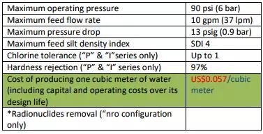 這款名叫CamelTrain?的飲用水處理單元采用全膜設(shè)計(jì),運(yùn)用超濾和納濾技術(shù),由Bondurant Technologies負(fù)責(zé)研發(fā)和銷售。Nimon稱它是世界第一個(gè)便攜式納濾凈水裝置,能夠去除病毒和細(xì)菌、包囊、重金屬,以及污染水體中的顏色、氣味和放射性核苷酸等。目前的出水接近反滲透的水質(zhì),但通量高達(dá)38L/min,單位成本低至5美分/m3。該產(chǎn)品占地面積很小,而且濾網(wǎng)更換頻率低,可以像旅行箱一樣拉動(dòng)或者背著行走,可以接通直流或者交流電源使用。目前其重量約為90kg,啟動(dòng)時(shí)間不到1分鐘。