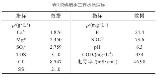 實驗用水為預(yù)沉后的脫硫廢水上清液,水質(zhì)分析結(jié)果如表1所示,該脫硫廢水水質(zhì)呈弱酸性,Ca2+、Mg2+、SO42-及鹽含量均較高。