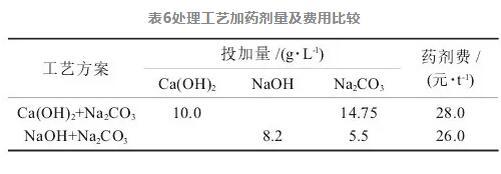 綜合考慮軟化效果和經(jīng)濟成本,選擇NaOH+ Na2CO3為該電廠脫硫廢水的軟化工藝。