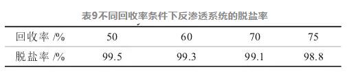 反滲透膜的脫鹽效果如表9所示。