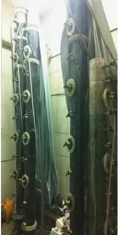 厭氧單元主要包括大深徑比厭氧反應器(適用于地下水水位較深、土地資源緊張的地區(qū))以及折板高效厭氧反應器(適合于地下水位高,或單獨一戶或幾戶農(nóng)居的生活污水就地處理,可在化糞池的基礎上改建)。該單元可有效降低有機負荷,減輕跌水曝氣工序的負擔,通常水力停留時間約3d,能為除臭創(chuàng)造條件。