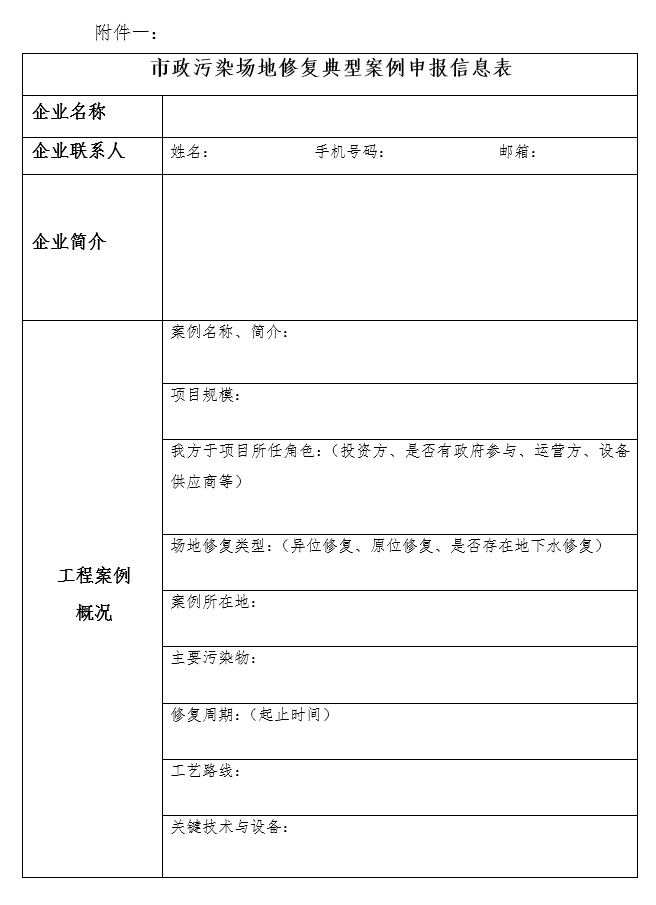 附件一:市政污染場地修復典型案例申報信息表