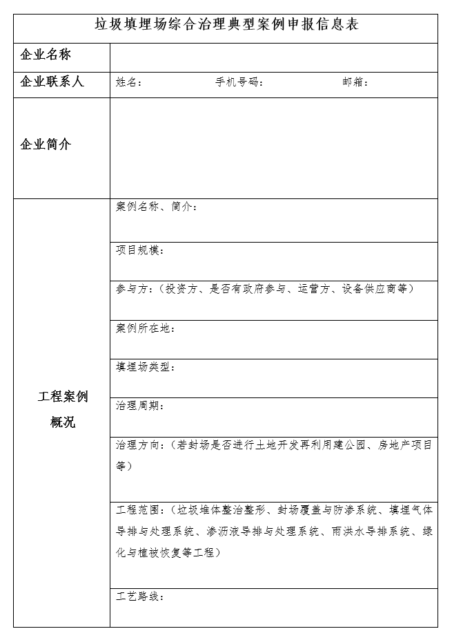 關于征集“市政污染場地修復、垃圾填埋場綜合治理典型案例”的通知