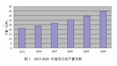 根據(jù)中華研普行業(yè)調(diào)研報告,國內(nèi)建筑垃圾產(chǎn)量預(yù)測圖1可知,2015年至2020年建筑垃圾產(chǎn)量逐年增長,到2020年時為39.66億噸。