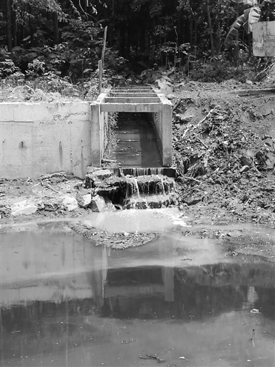 督察組注意到,這一河涌仍在整治中,岸邊硬化仍在施工階段。盡管近期連續(xù)下雨,站在海仔大排坑旁,仍然有陣陣臭味襲來。黑色的底泥高過水面清晰可見,岸邊留下黑色的污垢痕跡。河涌邊有多處污水排放口。監(jiān)測數(shù)據(jù)顯示,今年5月五洲世紀城附近兩處排污口排放污水的氨氮濃度高達44毫克/升、37毫克/升,COD濃度分別為173毫克/升、123毫克/升。五洲世紀城段水體發(fā)黑發(fā)臭,水質(zhì)氨氮濃度達23毫克/升,遠超過重度黑臭標準。