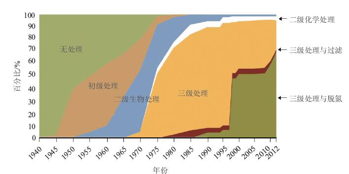 到20世紀(jì)20年代為止,幾乎所有的大城市都建立了市政污水管道系統(tǒng),市鎮(zhèn)和社區(qū)污水系統(tǒng)的建設(shè)進(jìn)度仍然緩慢。而市政污水處理能力不能滿足河流、湖泊、沿海水域快速惡化的水質(zhì)量問題的需求。1940年,全國僅有15個(gè)運(yùn)營的城市污水處理廠(到1955年,此數(shù)目增加了一倍)。大量排放的營養(yǎng)物質(zhì)和耗氧污染物導(dǎo)致了魚類大面積死亡和水傳染疾病,越來越引起公眾的關(guān)注。此外,在20世紀(jì)上半葉,水污染問題被視為一個(gè)需要地方解決的城市問題,對采取綜合治理行動(dòng)造成了阻礙。
