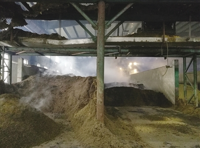 此外,課題針對(duì)污水污泥好氧發(fā)酵升溫周期長(zhǎng)、調(diào)理劑用量大的問(wèn)題,開(kāi)發(fā)了基于生物預(yù)發(fā)酵的瀝浸污泥好氧發(fā)酵優(yōu)化技術(shù),通過(guò)生物預(yù)發(fā)酵改善污泥微生物種群結(jié)構(gòu),調(diào)整堆肥調(diào)理劑組成結(jié)構(gòu),優(yōu)化好氧發(fā)酵通風(fēng)過(guò)程,改善篩分和熟料回流方式,促進(jìn)污泥中有機(jī)質(zhì)的降解和生物熱釋放。建設(shè)的污水污泥集中處置示范工程,將好氧發(fā)酵升溫周期縮短,減少了調(diào)理劑用量,可提高好氧發(fā)酵工藝效能。