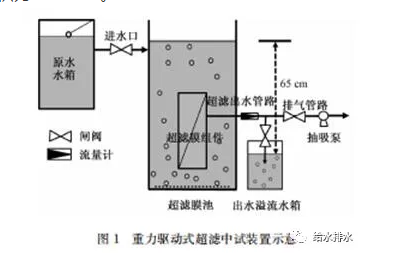 以超濾為核心的第三代凈水技術(shù)發(fā)展迅猛,國內(nèi)越來越多的大型水廠(5萬~30萬m3/d)采用超濾工藝,并且超濾工藝亦應(yīng)用于農(nóng)村飲用水工程(50~500 m3/d)。伴隨著膜工業(yè)的高速發(fā)展,超濾膜的造價持續(xù)下降,使得低通量超濾工藝成為可能?;谝陨咸攸c(diǎn),科研工作者開始關(guān)注以重力勢能為驅(qū)動力的低壓超濾技術(shù)。