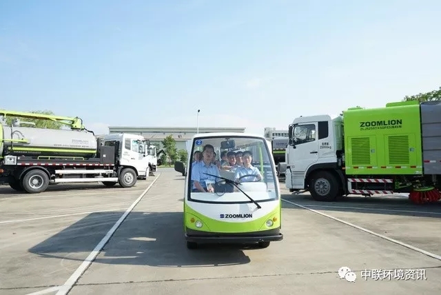 中聯(lián)環(huán)境CEO張建國、執(zhí)行總裁陳培亮陪同介紹了中聯(lián)環(huán)境無人駕駛掃路車,智能環(huán)衛(wèi)云平臺、智能垃圾箱、村鎮(zhèn)污水處理設備、新能源環(huán)衛(wèi)裝備等創(chuàng)新型產(chǎn)品,還參觀智能流水線制造車間。