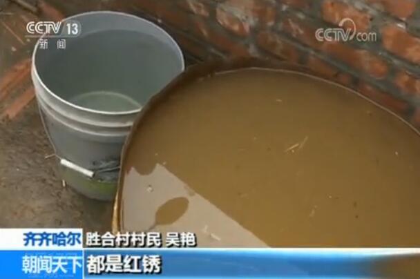 勝合村村民吳艷:抽上來是清的,過兩小時(shí)就紅色了,上面一層油,都是紅銹,要是做飯呢,味兒很難吃,沒法說,臭烘烘的。