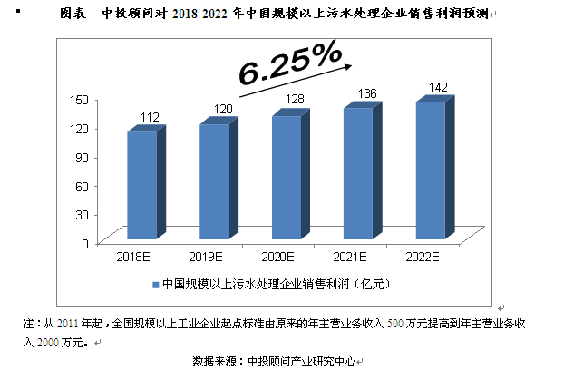 2016年,我國規(guī)模以上污水處理企業(yè)銷售利潤達(dá)到了101.51億元,相比上年增長33.66%。我們預(yù)計(jì),2018年我國規(guī)模以上污水處理企業(yè)銷售利潤將達(dá)到112億元,未來五年(2018-2022)年均復(fù)合增長率約為6.25%,2022年將達(dá)到142億元。