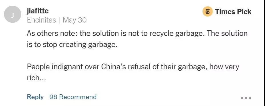 “像其他人說的那樣,解決問題的方法不是去回收,而應(yīng)該去停止制造垃圾。”