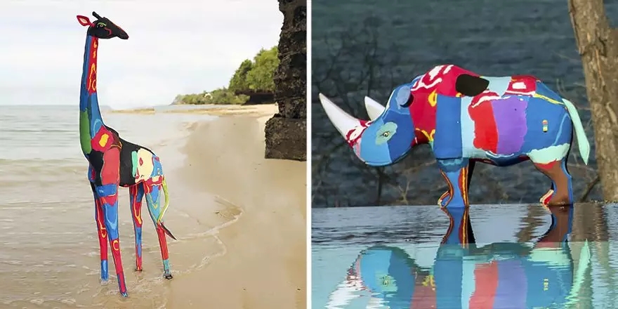 當(dāng)他將廢棄拖鞋制成異想天開的動物雕塑時