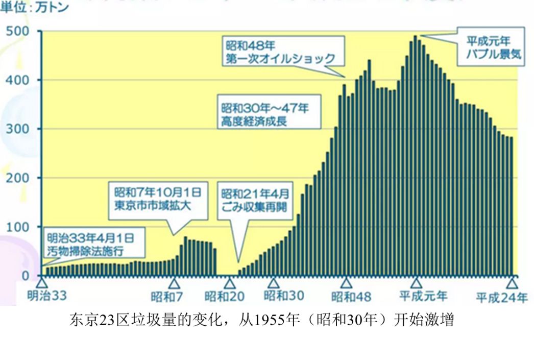 殊不知像日本這樣一個堪稱典范的潔凈國家也是從一段污染肆掠的黑暗歷史中走過來的。1955年起,日本進入了前所未有的經濟高速增長時期,經濟增量與垃圾增量同步爆發(fā),當時的日本也是垃圾隨處亂扔,污物隨便投棄。
