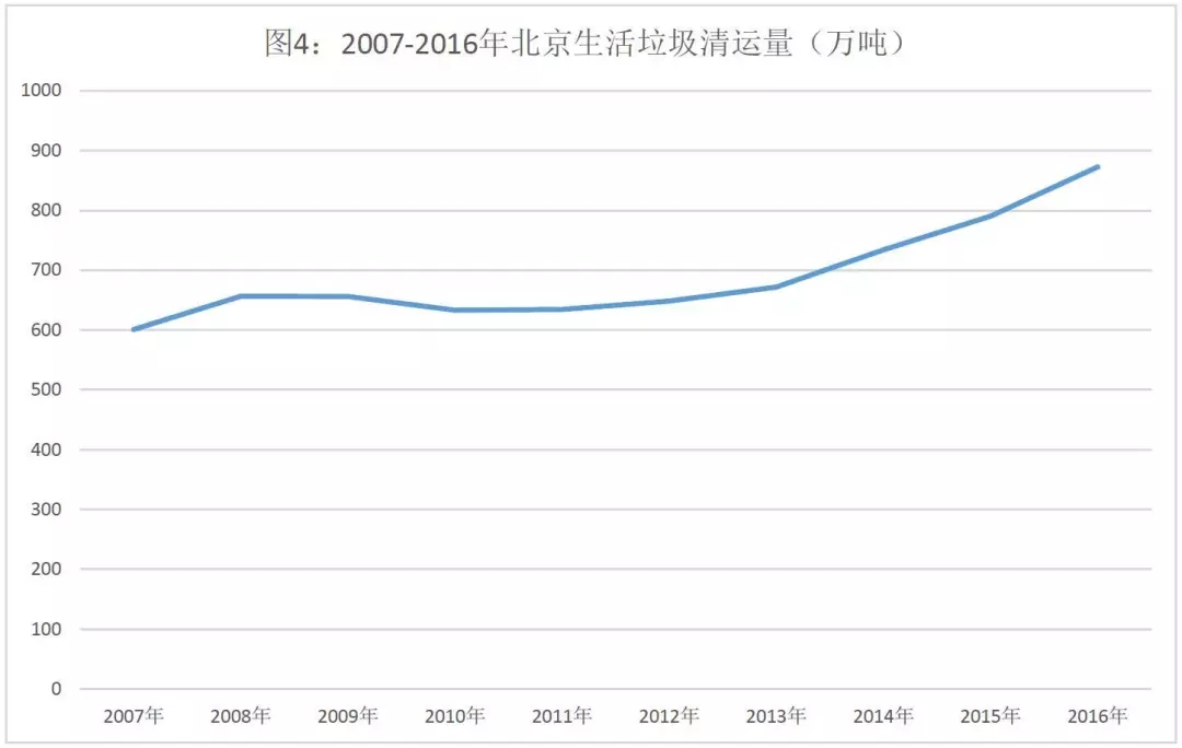 以北京為例,2007-2016年十年間,生活垃圾清運(yùn)量增長(zhǎng)了45%,同期人口數(shù)量增長(zhǎng)29.7%,遠(yuǎn)低于垃圾清運(yùn)量的增長(zhǎng)??梢?,北京市居民最能“掙錢”,同時(shí)產(chǎn)生垃圾的能力在不斷的“增強(qiáng)”。