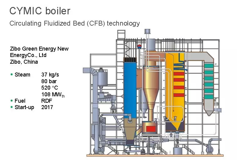 高參數(shù)的循環(huán)流化床焚燒爐具有蒸汽參數(shù)高,熱效率高,處理能力強(qiáng),焚燒工藝的飛灰產(chǎn)量低,可實(shí)現(xiàn)全自動化運(yùn)行,無人操作值守,焚燒線年運(yùn)行時間超過8000h等技術(shù)特點(diǎn)。