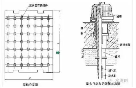 配水濾頭:其作用是向?yàn)V池均勻配水。