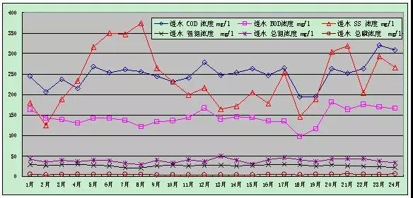圖2 實(shí)測出水主要污染物濃度變化圖