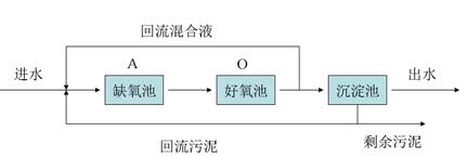 A-O工藝法也叫厭氧好氧工藝法,A是厭氧段,用于脫氮除磷;O是好氧段,用于除水中的有機(jī)物。該工藝的主要缺點有兩個:一是由于沒有獨立的污泥回流系統(tǒng),從而不能培養(yǎng)出具有獨特功能的污泥,難降解物質(zhì)的降解率較低;二是若要提高脫氮效率,必須加大內(nèi)循環(huán)比,因而加大運行費用。此外,內(nèi)循環(huán)液來自曝氣池,含有一定的DO,使A段難以保持理想的缺氧狀態(tài),影響反硝化效果,脫氮率很難達(dá)到90%。