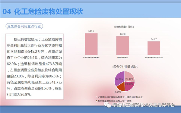 目前,我國(guó)化工行業(yè)產(chǎn)生的危險(xiǎn)廢物量大、種類多、成分復(fù)雜。在國(guó)家對(duì)環(huán)境保護(hù)的要求越來(lái)越高,對(duì)危險(xiǎn)廢物管理越來(lái)越嚴(yán)的趨勢(shì)下,化工行業(yè)面臨大量化工危廢,如廢酸、廢堿、廢鹽及其它廢渣的處置壓力,實(shí)現(xiàn)化工危險(xiǎn)廢物的減量化、資源化和無(wú)害化是化工行業(yè)亟需解決的重要難題。