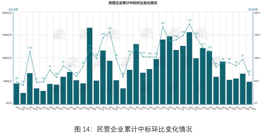 9月全國共成交了 157 個 PPP項(xiàng)目,共計 1993.24 億元,截止至 2018 年 9 月底,全國范圍內(nèi)公布中標(biāo)的 PPP項(xiàng)目已達(dá)到 11.85 萬億元,總個數(shù)為 8191 個。9 月 PPP落地項(xiàng)目規(guī)模較上月略微有所增加,但項(xiàng)目個數(shù)有所下降。其中,生態(tài)建設(shè)和環(huán)境保護(hù)行業(yè)成交金額251.3億元,項(xiàng)目18個。