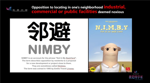 “鄰避”是什么呢?“鄰避” 實(shí)際上是音譯,英文叫:NIMBY,是五個英文單詞(Not In My Back Yard)的首字母的縮寫。所以有人中文做了一個非常好的翻譯叫:鄰避。