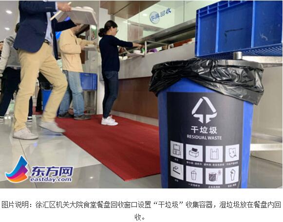 垃圾分類,機關(guān)先行。漕溪北路336號是上海市徐匯區(qū)政府,從年初開始,機關(guān)大院就先行先試,建設(shè)垃圾分類示范點。記者看到,無論是茶水間、大堂,還是走廊、電梯廳,均設(shè)置有垃圾收集容器。徐匯區(qū)機關(guān)事務管理局副調(diào)研員楊志毅告訴記者,“機關(guān)大院內(nèi)各樓層和廣場共配置了相關(guān)收集容器193各,其中干垃圾桶64個,濕垃圾桶62個,可回收物桶60個,有害垃圾桶7個?!?/p>