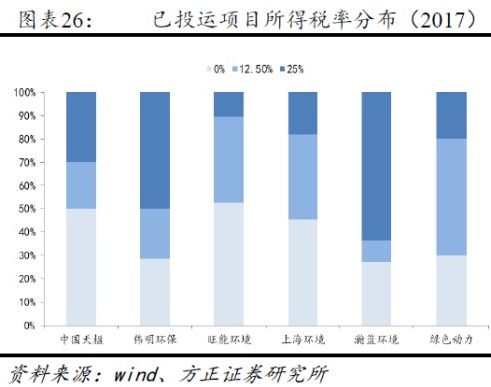 根據(jù)財政部、國家稅務總局、國家發(fā)改委研究制定并實施的《環(huán)境保護節(jié)能節(jié)水項目企業(yè)所得稅優(yōu)惠目錄(試行)》之規(guī)定,垃圾焚燒發(fā)電項目的經營主體,自項目取得第一筆生產經營收入所屬納稅年度起,第一年至第三年免征企業(yè)所得稅,第四年至第六年減半征收企業(yè)所得稅。同時,部分設備子公司通過申請《高新技術企業(yè)證書》,可享受15%的優(yōu)惠稅率。